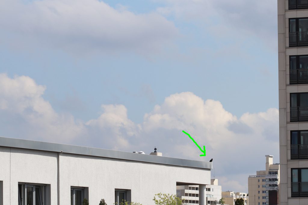 Neben der Antenne, wo er am häufigsten sitzt und schmettert (siehe Foto oben), gibt es eine noch höhere Antenne. Da haben wir ihn auch schon mal gesehen, aber aus nicht zu erforschenden Gründen mag er die untere lieber.