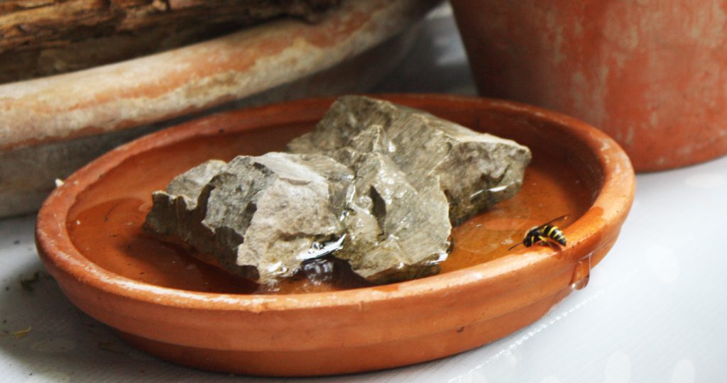 Unser allererster Gast in diesem Jahr, Sabinchen, das Solitärwespchen, hat vor geraumer Zeit eine andere Bleibe gewählt. Irgendwo in den Weiten des Arnulfsparks. Wir fanden das einigermaßen treulos. Offensichtlich hapert es aber im neuen Heim an der Wasserversorgung. Sabine kommt ab und zu an die Full-Service-Insektentränke Ihrer ehemaligen Hotelanlage zurück. Heute haben wir sie angetroffen, das liegt wohl auch an den wärmeren Temperaturen.