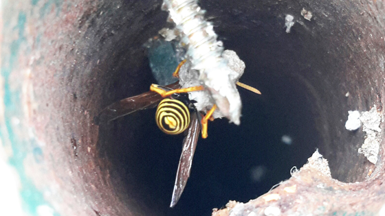 Unsere neue Weltsicht wird hier wieder bestätigt. Es gibt einfach zu wenig natürliche Hohlräume in der Menschenwelt, da nimmt die Wespe, was sie kriegen kann.