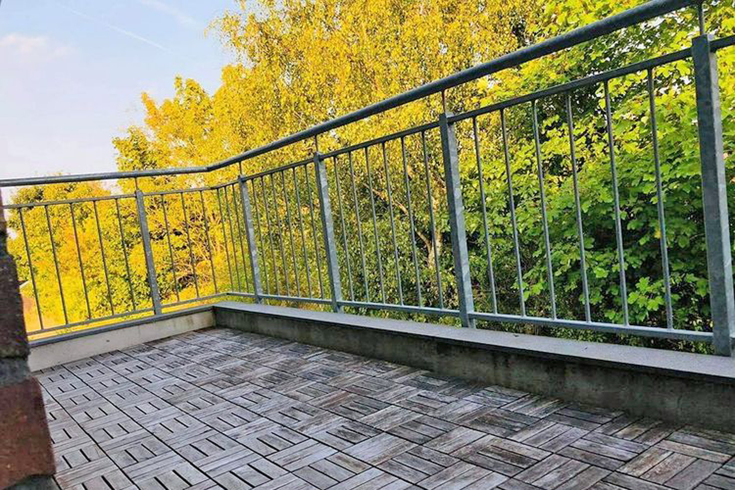Der Balkon mit Ausrichtung nach Osten hat sieben Quadratmeter. Es gibt sowohl sonnige als auch halbschattige und schattige Bereiche. Die Sonnen-Stunden sind von 9-14 Uhr.