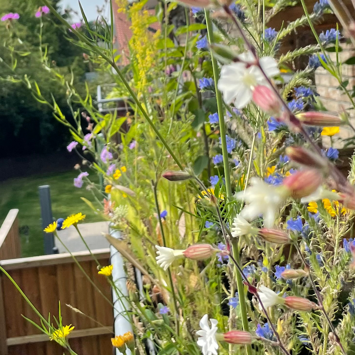 Ende Juli erinnert der Balkon an eine artenreiche Wiese.