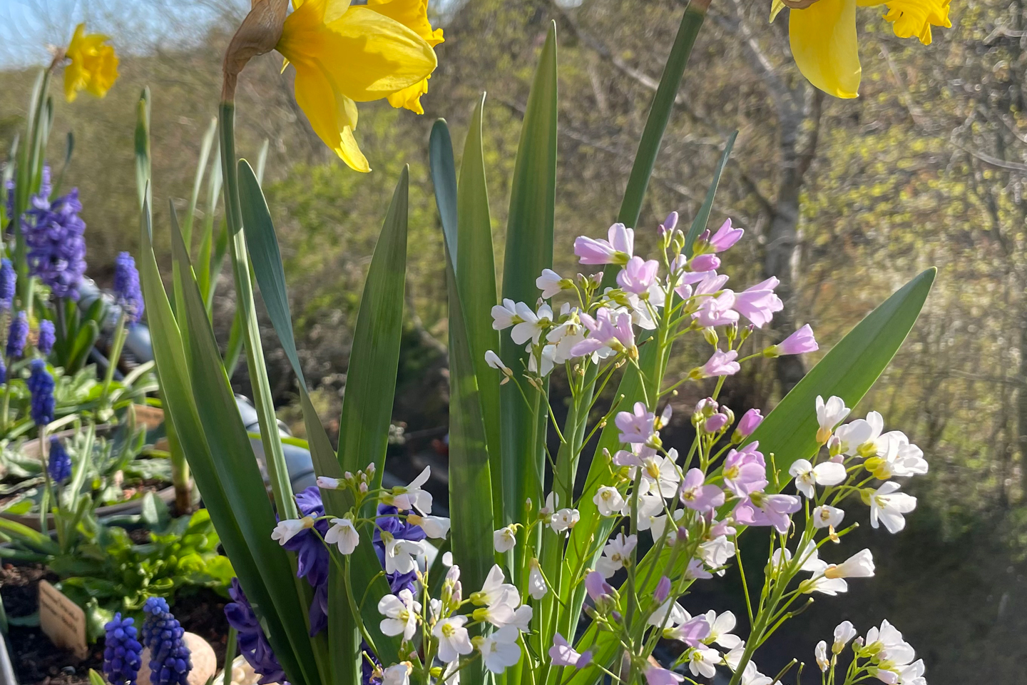 Die bestellten heimischen Wildstauden bei Olerum kamen im Frühling 2022 rechtzeitig an und ich habe sie direkt in die oberen Kästen gepflanzt, zusammen mit diversen Frühblühern. Alles ist gut angewachsen.