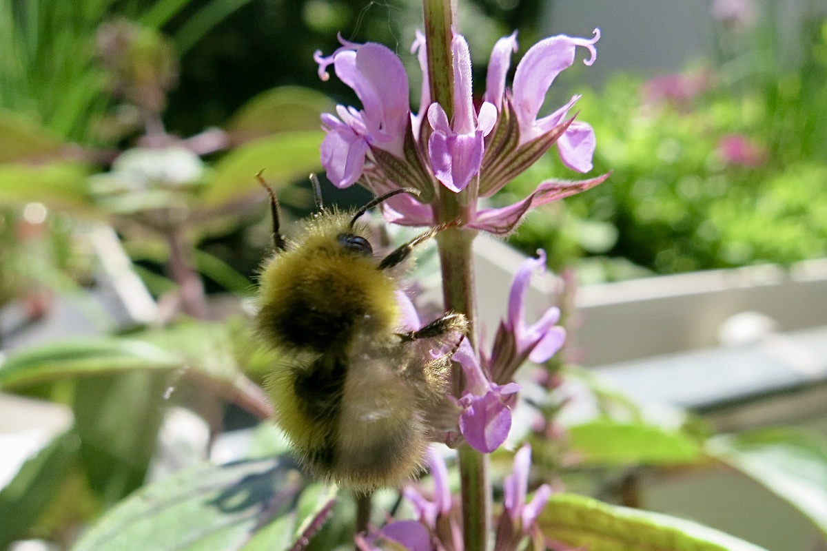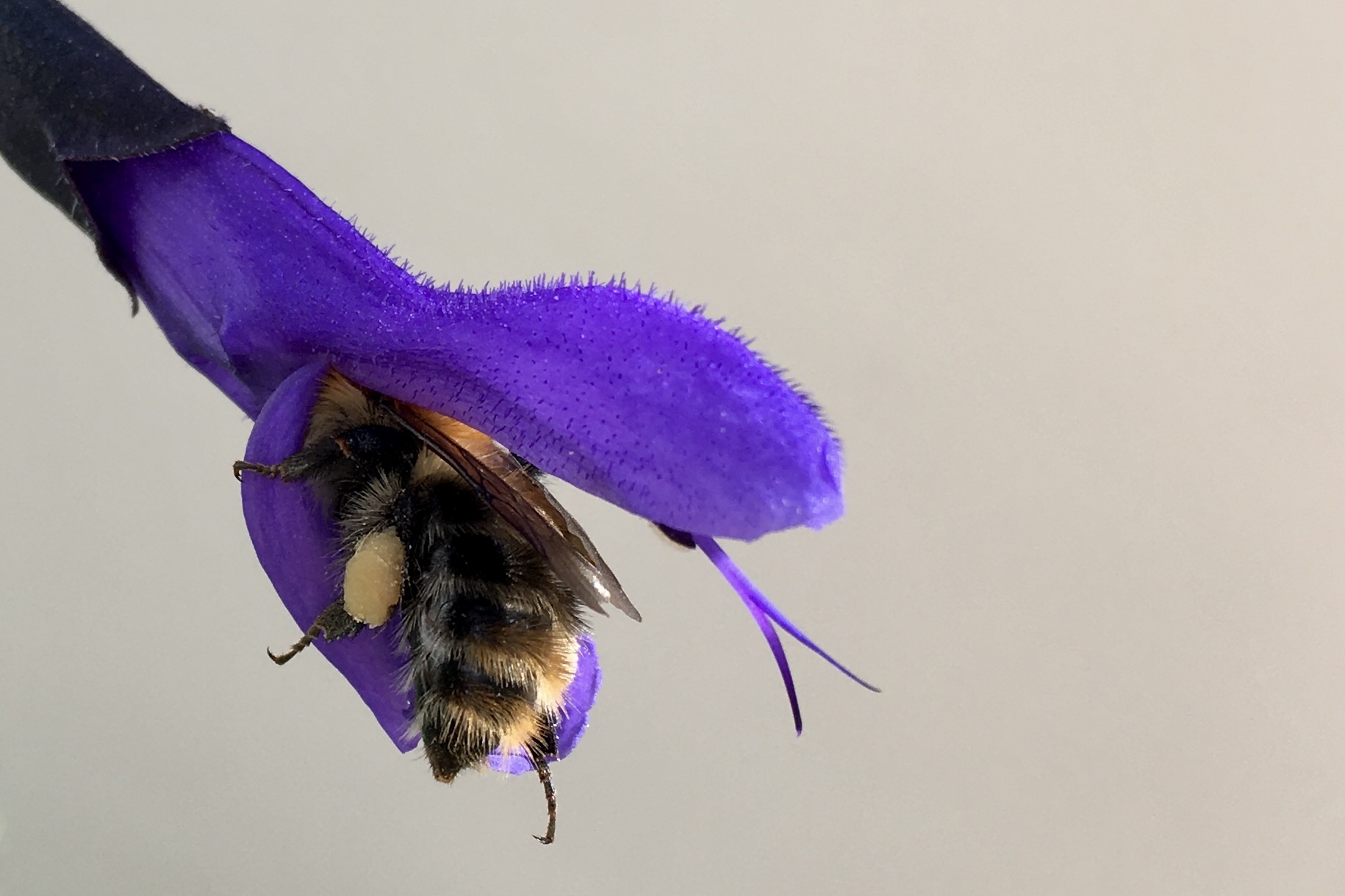 Fällt die Hummel dem Salbei hier freudig in die Arme oder stürzt sie gleich ab?