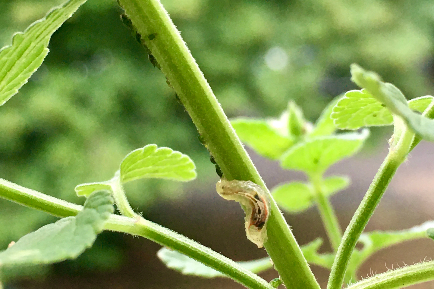 Unvorstellbar, dass aus dieser langen stacheligen „Raupe“ mal ein kleiner runder Marienkäfer wird. Beide sind supereffektive Blattlausvertilger.
