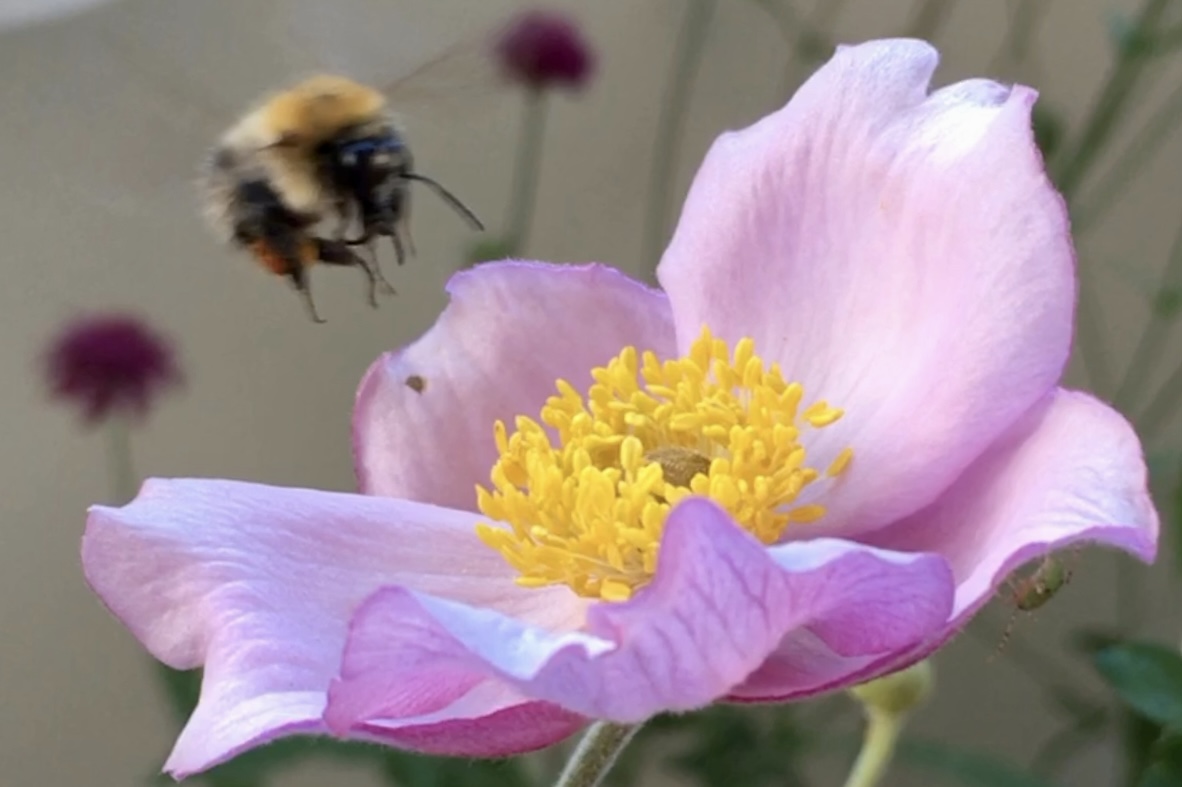 Herbstanemone: Ich liebe das Geräusch, wenn die Hummeln durch die Blüte pflügen.