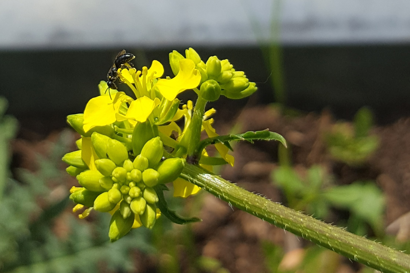 6) Acker-Senf: War in der Samenmischung enthalten und lockte bei uns zahlreiche Masken- und Schmalbienen an.