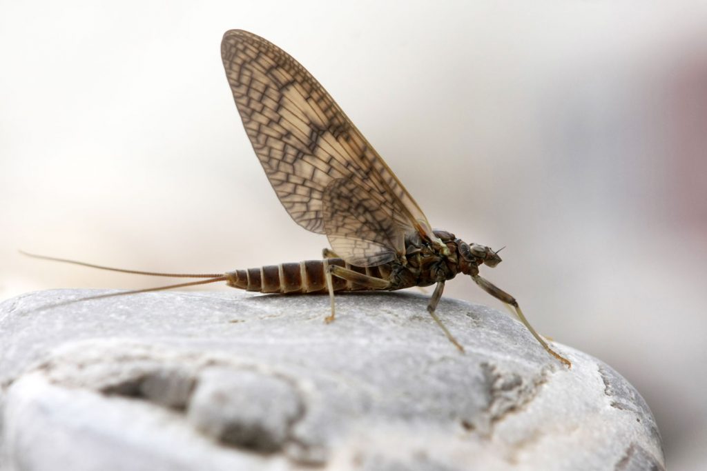 Über die Beschreibung des geheimnisvollen Tieres fand ich im Internet schnell den Hinweis auf eine Eintagsfliege. Ohje. Eine Eintagsfliege, deren Leben nun unglücklicherweise auch noch durch einen Unfall verkürzt wurde.