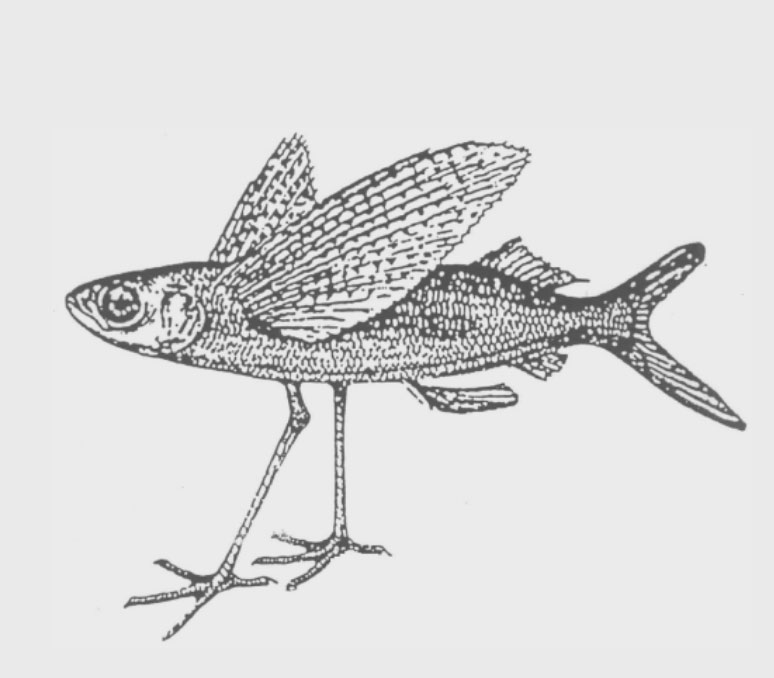 Ich wusste zwar jetzt den Namen, aber erst nach einigen Tagen fiel mir ein, woran mich das Wesen eigentlich dauernd erinnert hatte. An dieses Fabeltier, das die Speisekarte im Wirtshaus „Zum Fischermeister“ am Starnberger See ziert: Eine Renke mit Flügeln und Hühnerbeinen.
