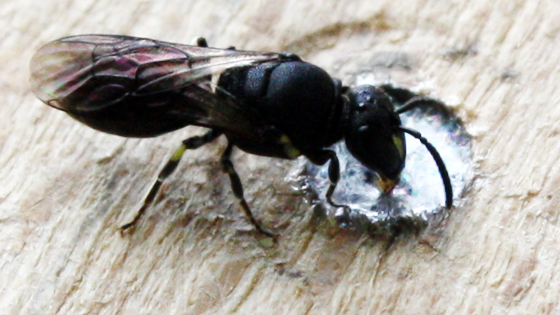 Maskenbienen (Hylaeus) sind so klein, dass ich immer Angst habe, sie einzuatmen und in der Nähe die Luft anhalte. Vier bis neun Millimeter groß, sagt die Broschüre Bienen und Wespen in München des Bunds Naturschutz in Bayern.